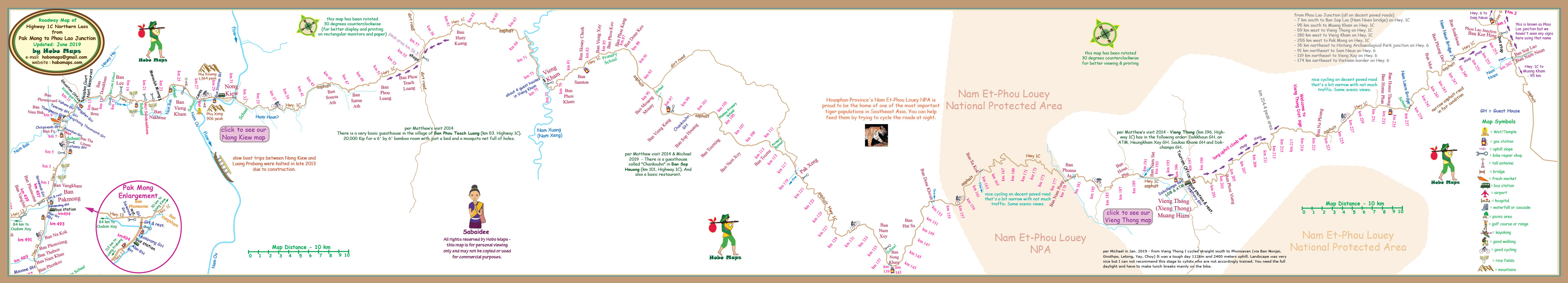 Map of Highway 1C Upper in Northern Laos by Hobo Maps - Go To Highway Map Links Page - - - Home