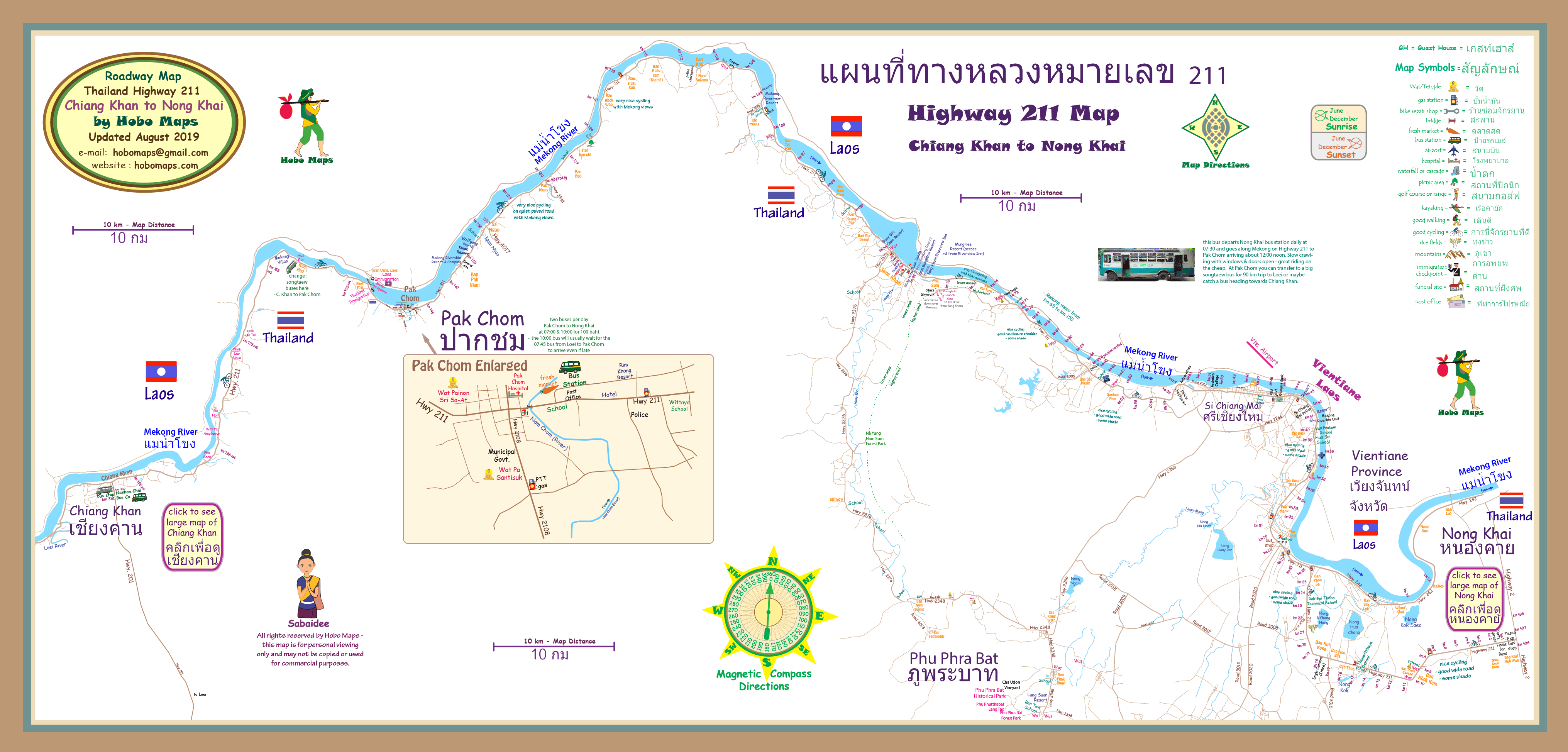 Map of Highway 211 in Northern Thailand (Chiang Khan to Nong Khai) by Hobo Maps - Go To Highway Map Links Page - - - Home
