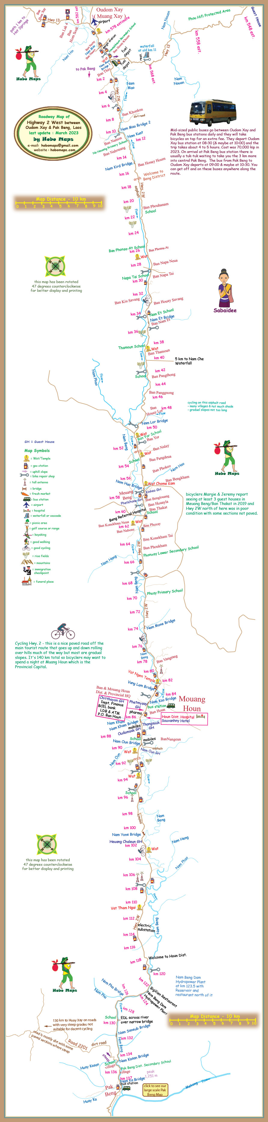 Map of Highway 2W in Northern Laos by Hobo Maps - Go To Highway Map Links Page - - - Home