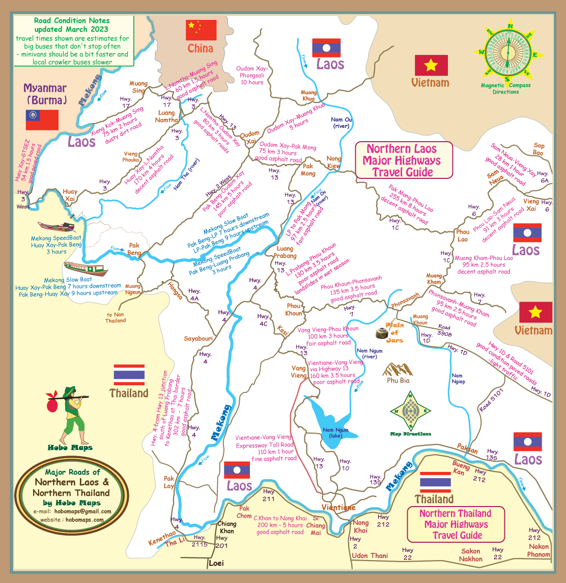 Travel Guide Map of Major Roads in Northern Laos by Hobo Maps - - -