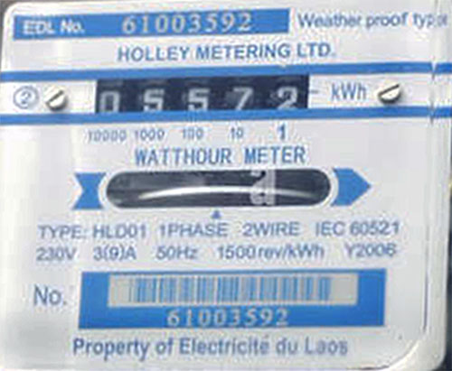 Lao Electric meter images below - 230 volt single phase at 50 Hz:
