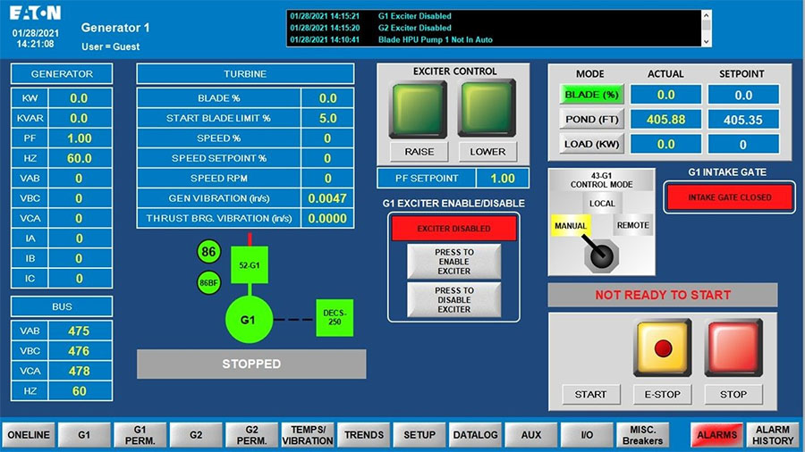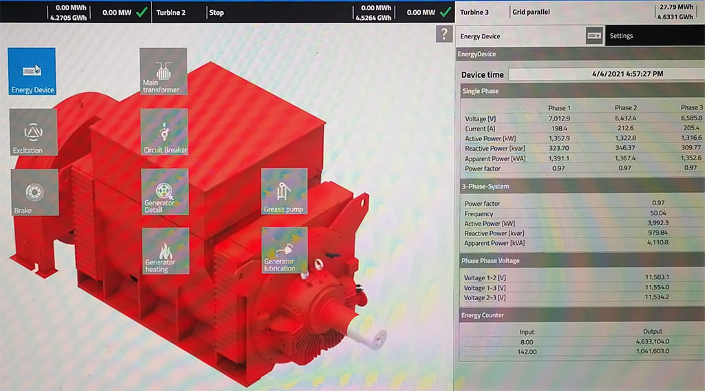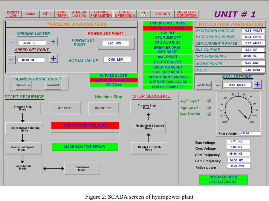 Human Machine Interface image below for typical hydropower turbine-generator set: