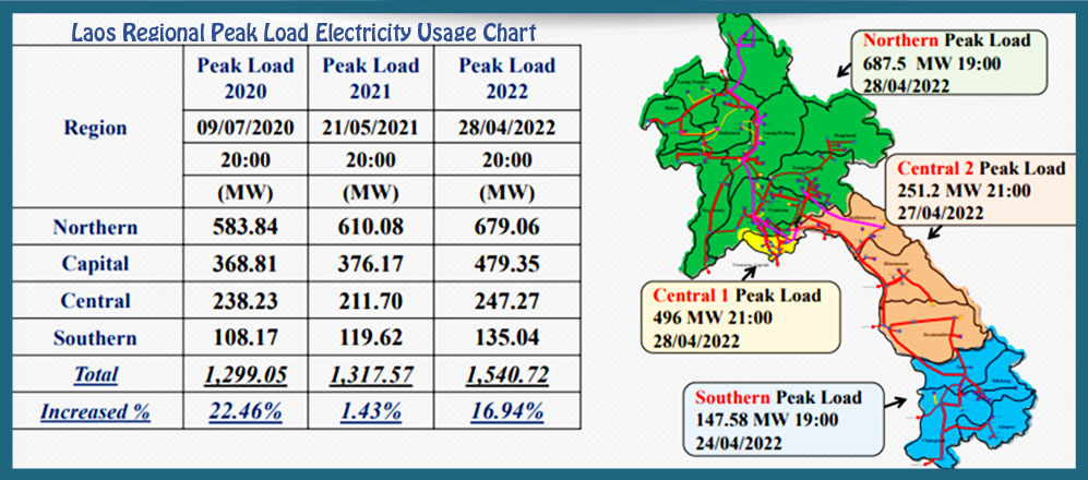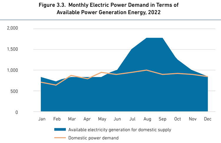 Laos power demand and generation seasonal charts below