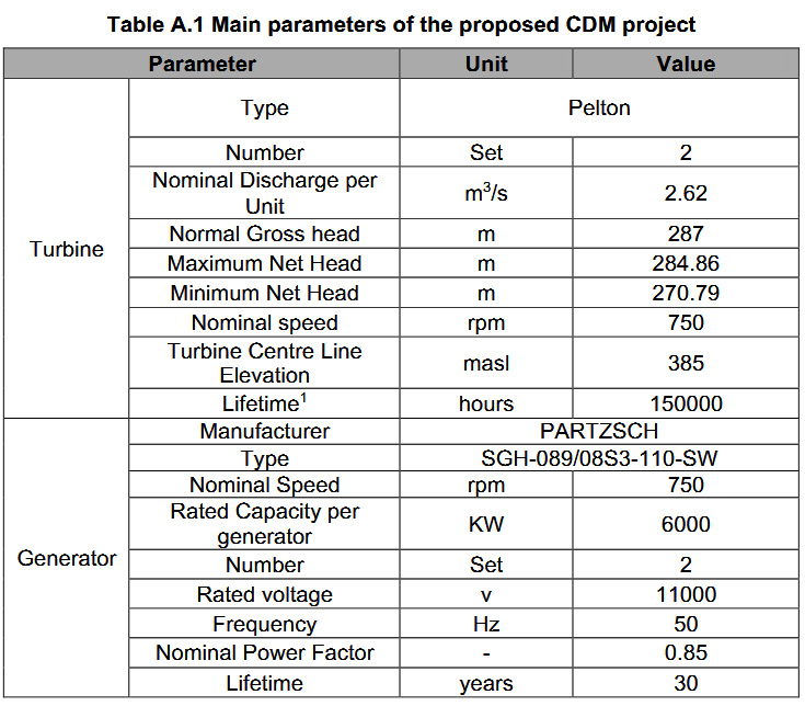 Installed capacity is 15 MW from 4 sets Horizontal Francis Turbine Generators - 2 sets at 5 MW each and 2 sets at 2.5 MW each