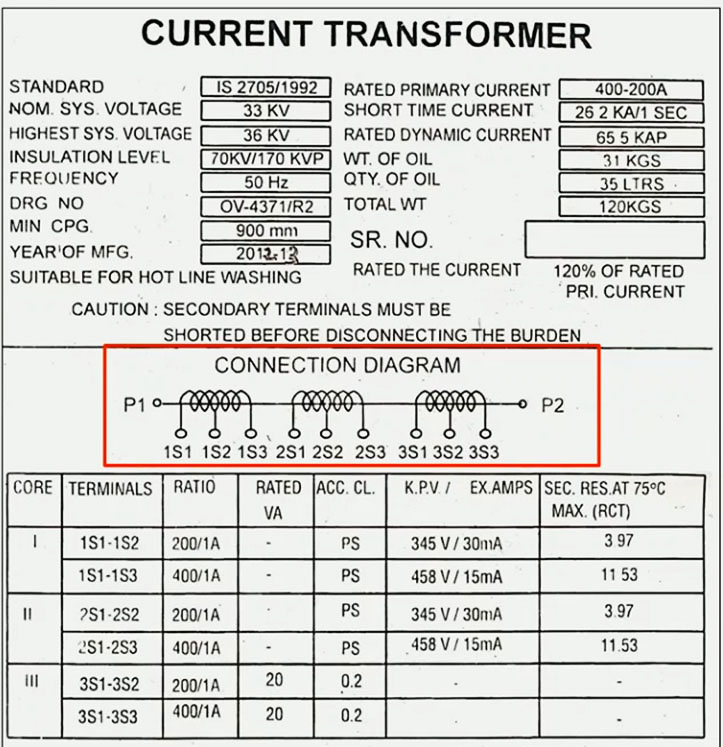 Transformer nameplate image below shows 1 Primary Winding & 3 Secondary Windings: