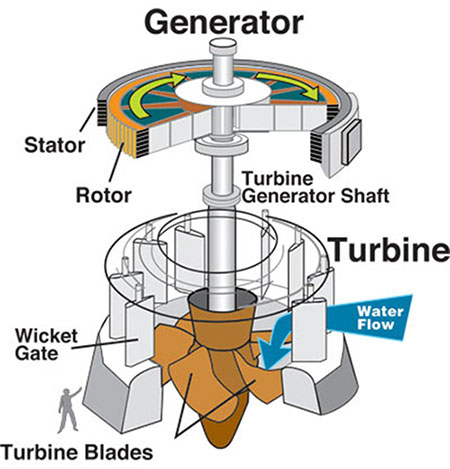 This web page has simplified visual examples of how the hydroelectric generation process works.