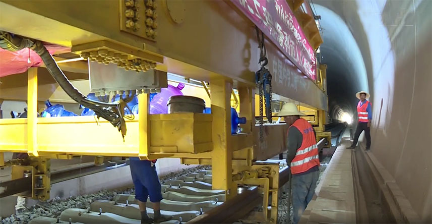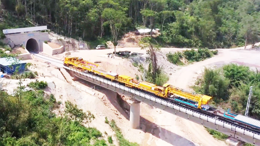 Lao-China Railway track laying images below at 661 meter-long Ban Nong Khay tunnel entrance: