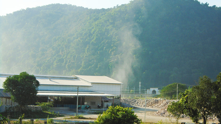 Image below of stone-crushing facility in operation near the Vang Vieng tunnel entrance seen in the background.