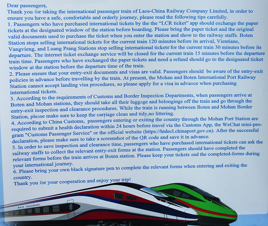3. Chinese Yuan is no longer accepted on board the train once the train crosses into Laos