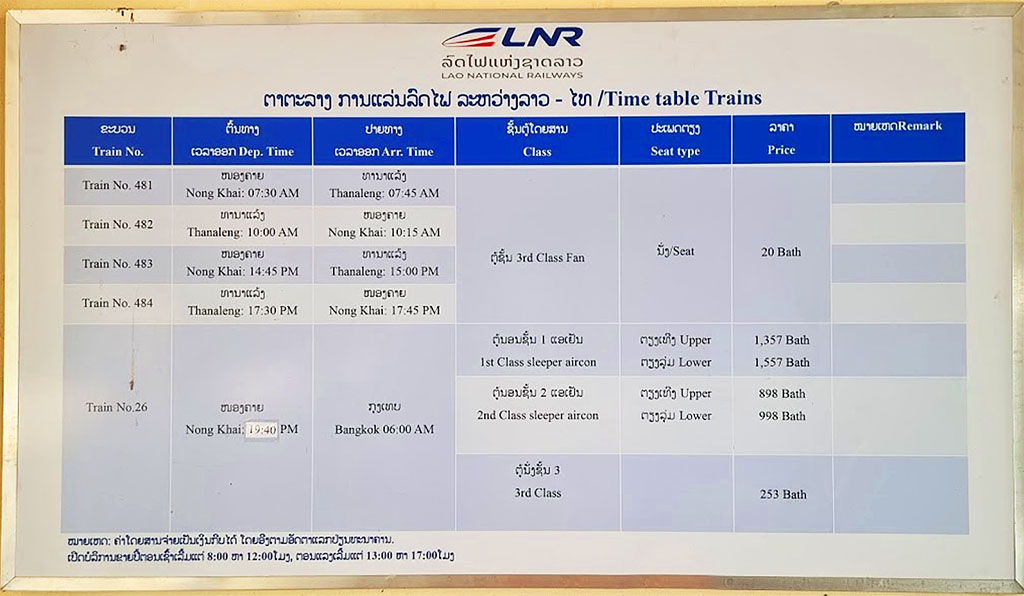 Thanaleng-Nong Khai Railway Jan. 2024 timetable below includes sleeper train transfer info.