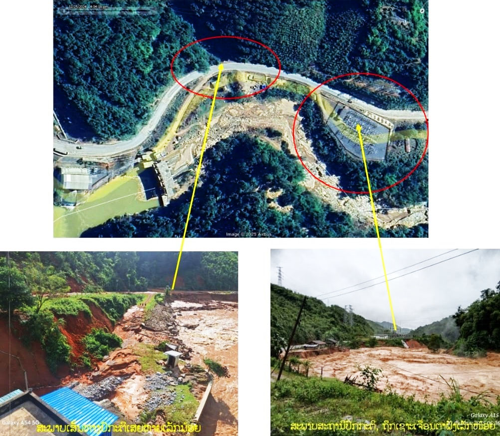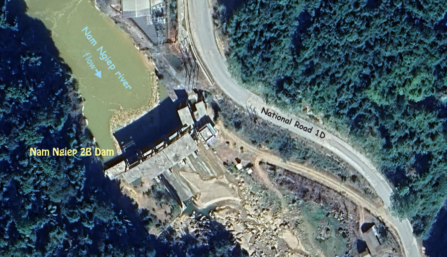 September 29, 2025 during typhoon Buoalai we have reports of a "Dam Failure" at Nam Ngiep 2B with comment of "big loss" but few details. See Facebook link 1 & Facebook link 2 . On one video we can see the dam structure with all 4 release gates closed and water rushing around one end of the structure which seems to be some sort of a washout. Apparently no injuries or casualties but Road 1D was closed temporarily.