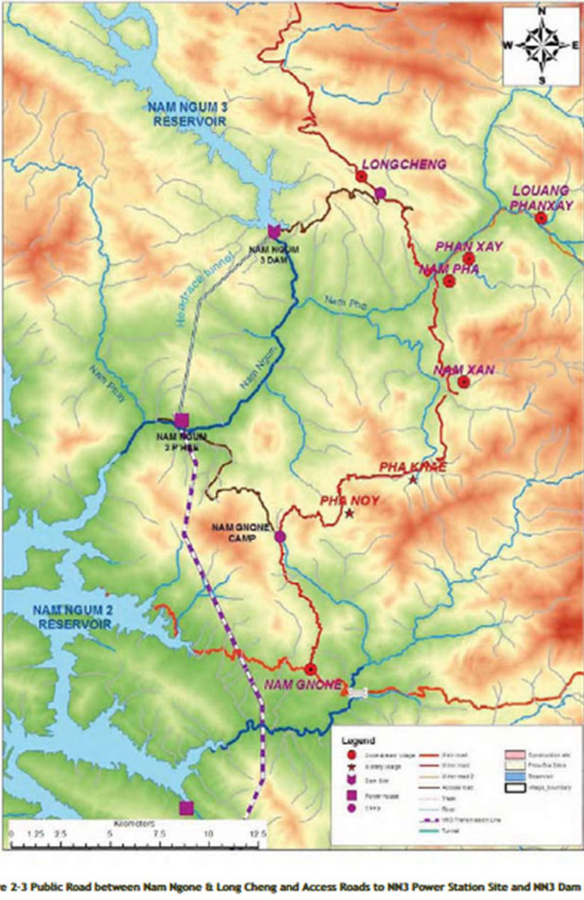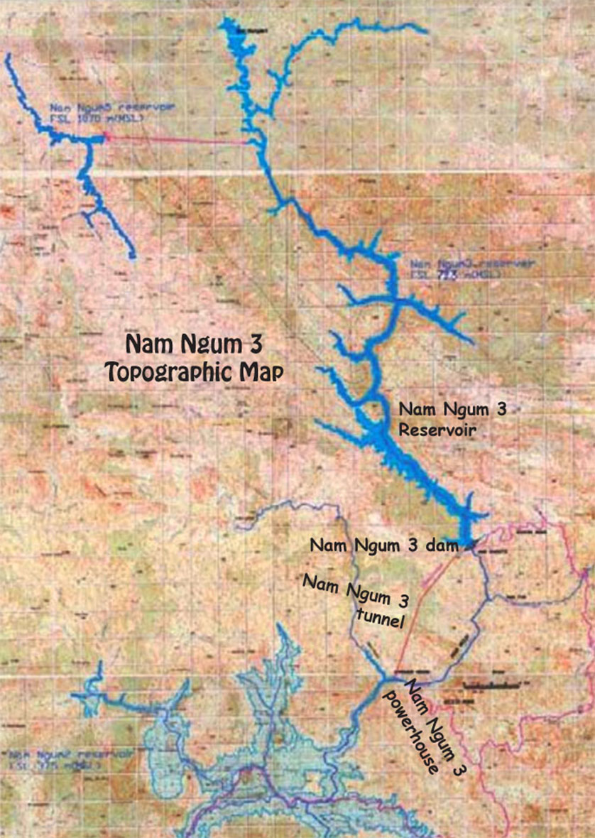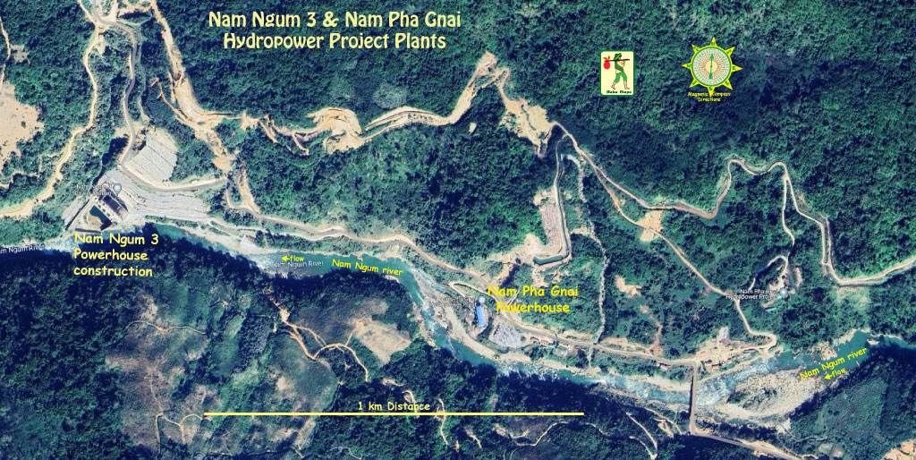 Nam Ngum 3 and Nam Pha Gnai projects layout map below - the powerhouses are not far apart: