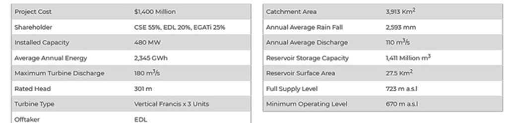 The 480 MW hydropower facility will be capable of generating up to 2,345 GWh of electricity annually.