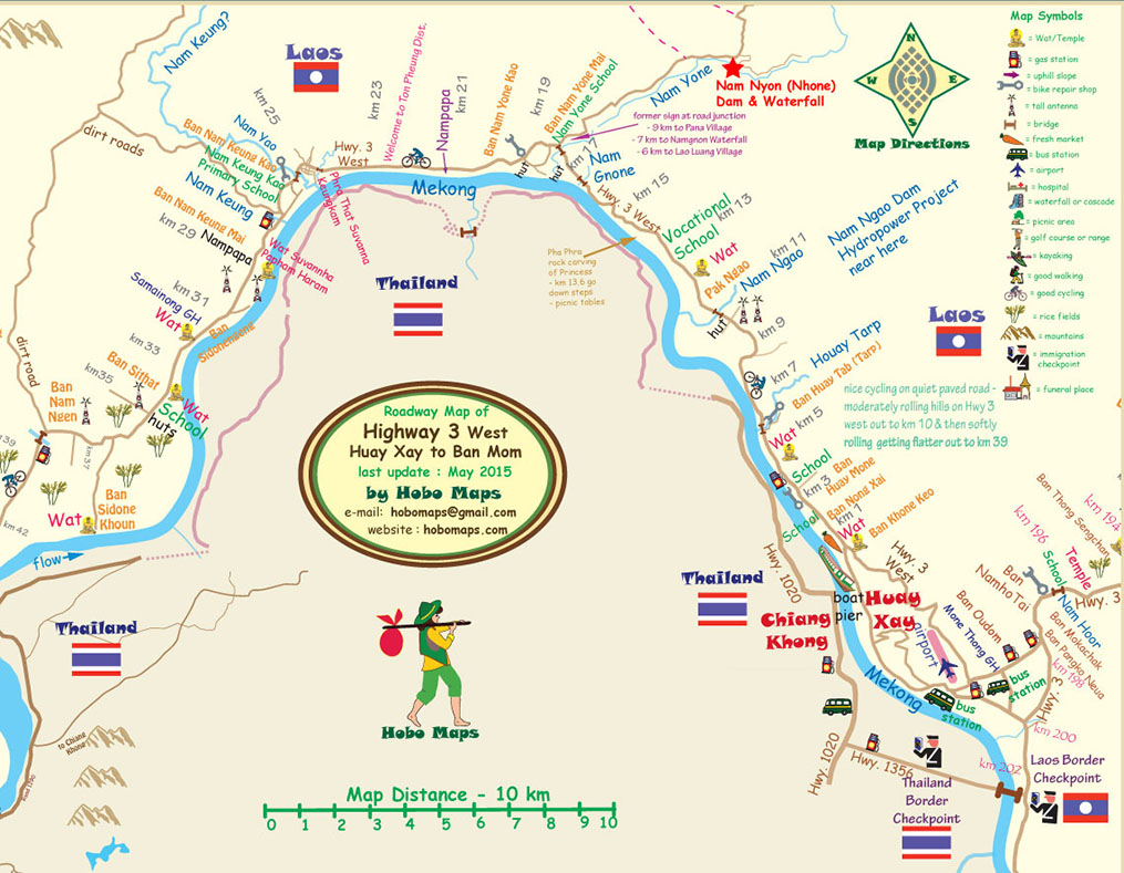 Directions for travel to Nam Nyon Dam & Waterfall from Huay Xay in our our Hobo Map below
