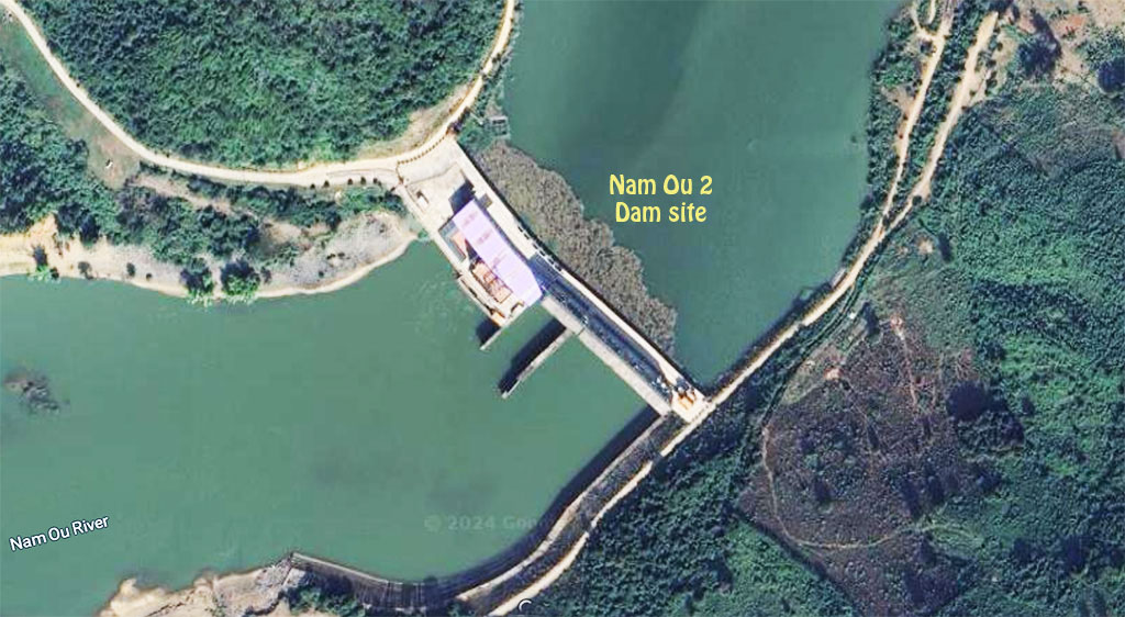 Satellite images below show the Nam Ou 2 dam location at coordinates 20°23'17.0"N 102°26'58.4"E (20.388056, 102.449556).