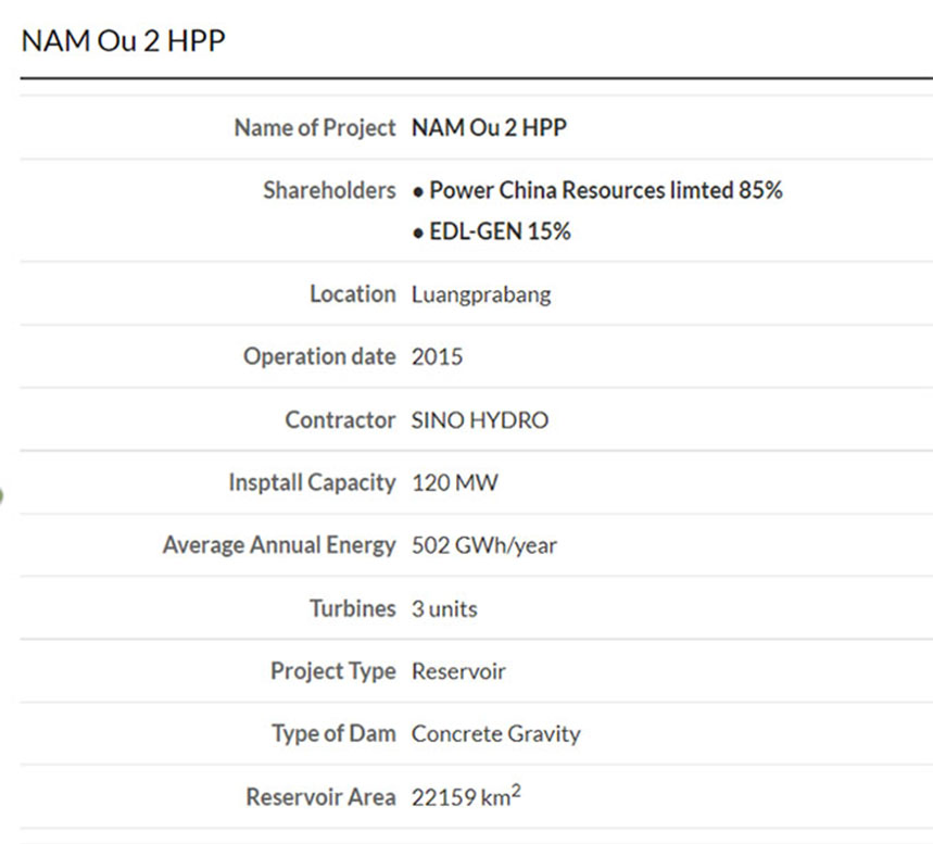 Nam Ou 2 Dam Hydropower Info by Hobo Maps - Go to Hydropower Projects Page - - Home