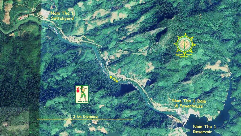 Satellite image below shows locations of Nam Tha 1 & 2 Dams: