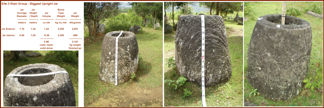 This web page contains photos and measurements of the largest megalithic jars found at Jar Sites 1, 2, 3, & 16 during our visits to the Plain of Jars in May and October 2012.