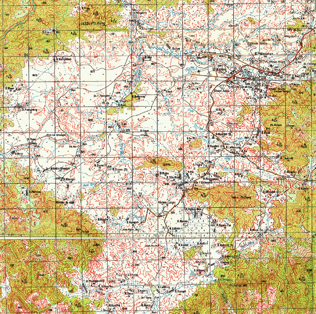 A water flow analysis of the PDJ area and a watershed drainage map of the whole basin as shown on the map below reveals that there is only one outflow river for this area and that any sort of blockage at that sole outlet could create a lake behind it. This critical point is at the Nam Kho River valley northwest of Phonsavanh town as the river flows north between Phou Keng Mountain and the high ground at the kilometer 122 marker on Highway 7.