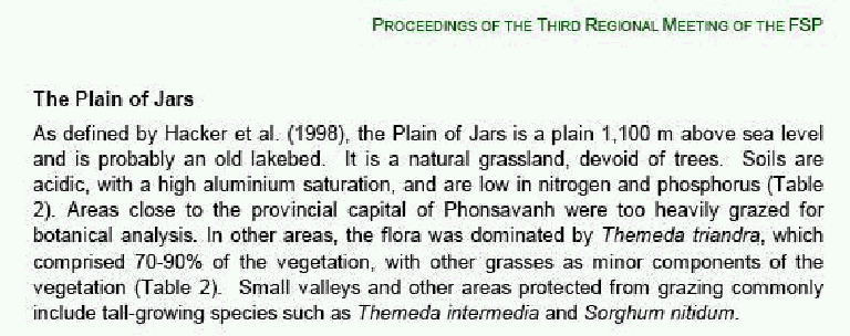 Another Former Lake Quote below is from an agricultural study article with a comment that the PDJ is probably an old lakebed. The article is titled "Some Natural and Induced Grasslands of the Lao PDR" by JB Hacker - below