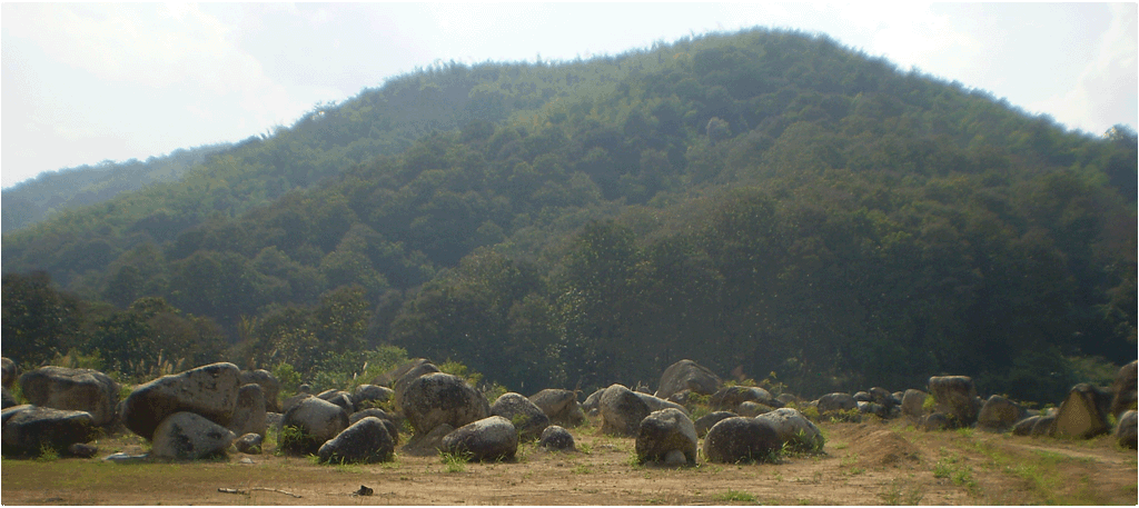 Mae Chan Thailand Boulders below on top of ridge in 2012 - this is the type of scene that may have been at PDJ that inspired the jar carving custom.