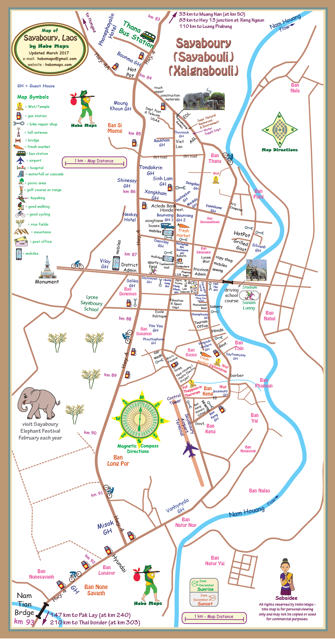 Our Sayaboury map is also available in PDF format for off-line viewing on computers, tablets & mobiles - $1.00 each - click HERE for info
