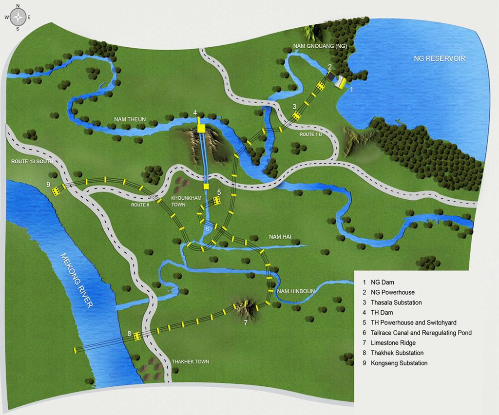 Theun-Hinboun Hydropower Project profile view layout in image below after the expansion project: