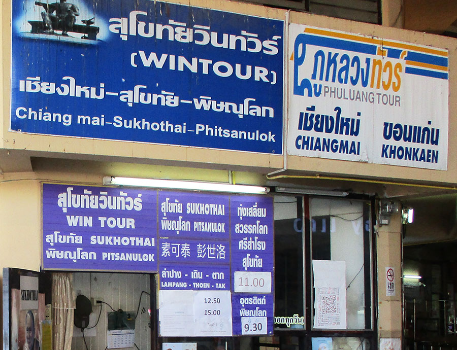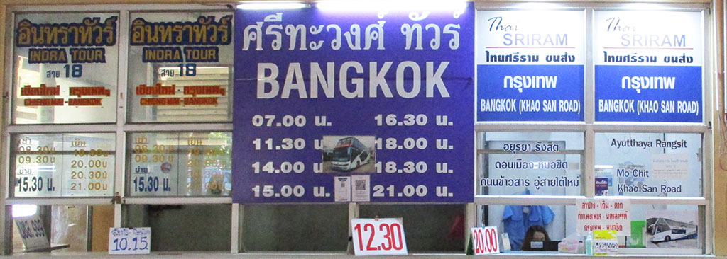 Phitsanulok - is on main route from C. Mai to Bangkok so possible to get on a bus to Bangkok and get off at Phitsanulok. Fastest route is via Phrae by Highway 11. Slower route goes via Ayuthuya and Tak. Phitsanulok is a major transfer point to change buses between east-west and north-south routes. From there buses go east to Loei, Udon Thani, Sakon Nakhon & Nakhon Phanom. Buses go west to Tak & Ayutthya. South to Khon Kaen, Ubon Ratchathani & Bangkok. North to Phrae, Lampang, Lamphun & Chiang Mai. Most trains from C. Mai stop in Phitsanulok.