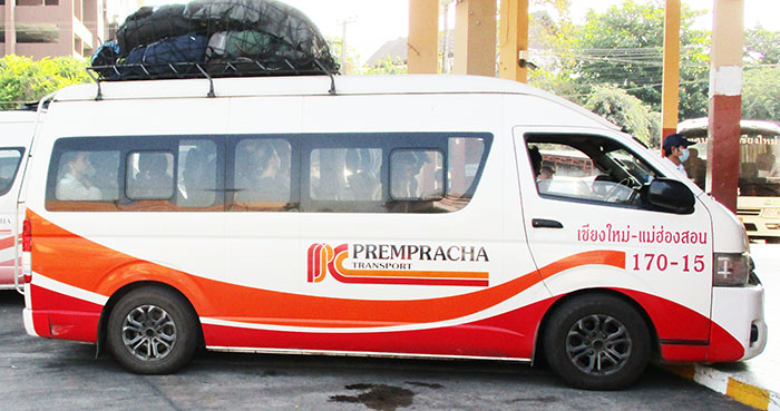 Pai & Mae Hong Son - most transport to Pai from C. Mai is done by minivns from Arcade Bus Terminal 2 and the trip takes about 3 hours with a lunch stop on the way. The minibus cost is 150 baht per person (14 passenger spacious vans) and tickets can be bought the day before or the day of the trip. Bicycles cost an extra 100 baht. Most guest houses in C. Mai can also arrange for minivans to pick up passengers from the guest house. The roads near Pai are winding and up and down hills a lot.