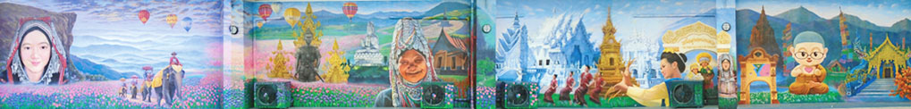Mural images below painted on wall outside Chiang Rai central Bus Station 1