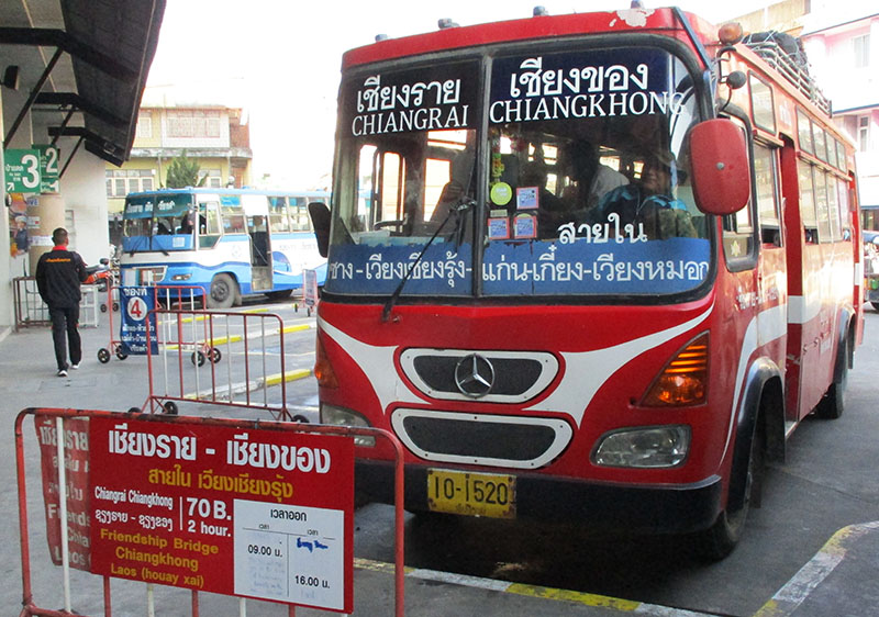 - Buses to Chiang Khong - big red buses slowly go between Chiang Rai and Chiang Khong with departures every hour or so from Station 1 in central Chiang Rai. They stop anywhere along their route to pick up or drop off passengers.