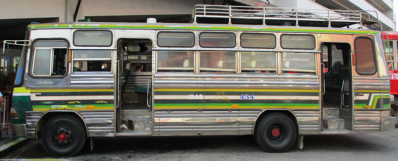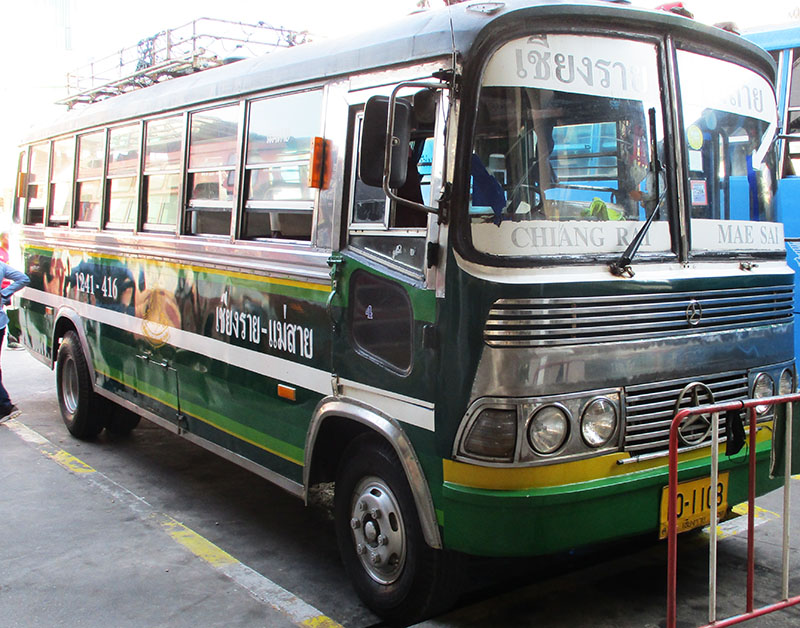 Old dark green buses below go between Chiang Rai and Mae Sai every hour or so.