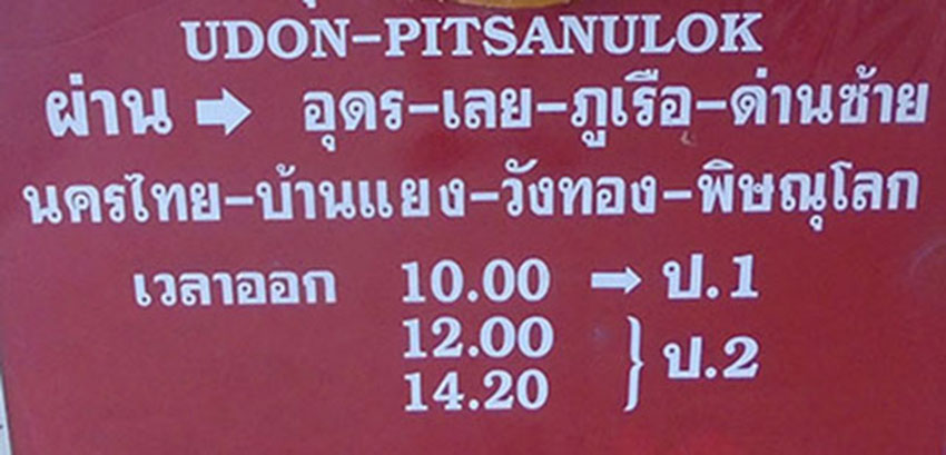 Daytime schedule for buses to Pitsanulok (Phitsanulok) shown below as of August 2019. It shows when the buses arrive in Loei (they start their trip earlier in Udon Thani).