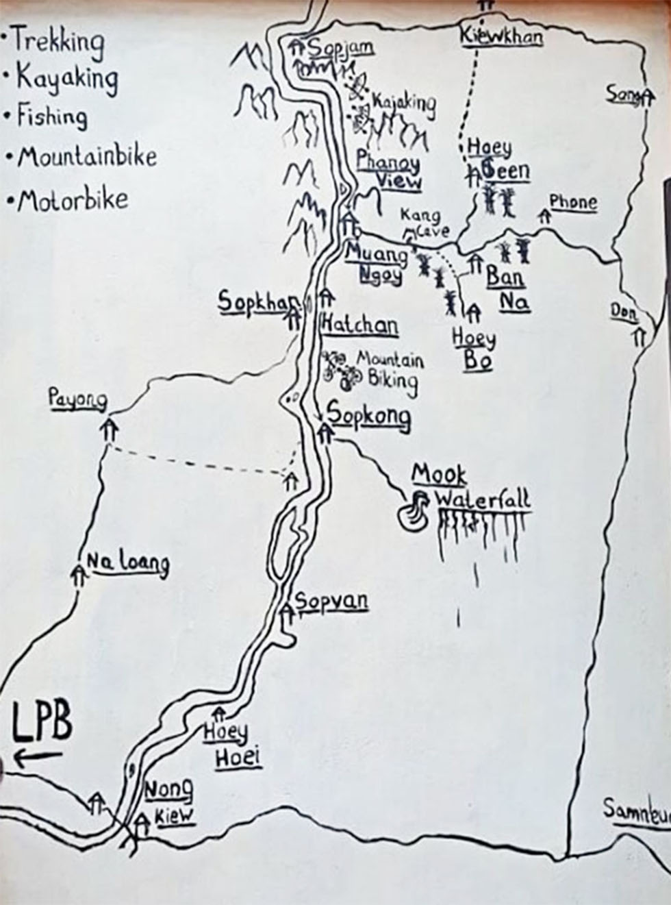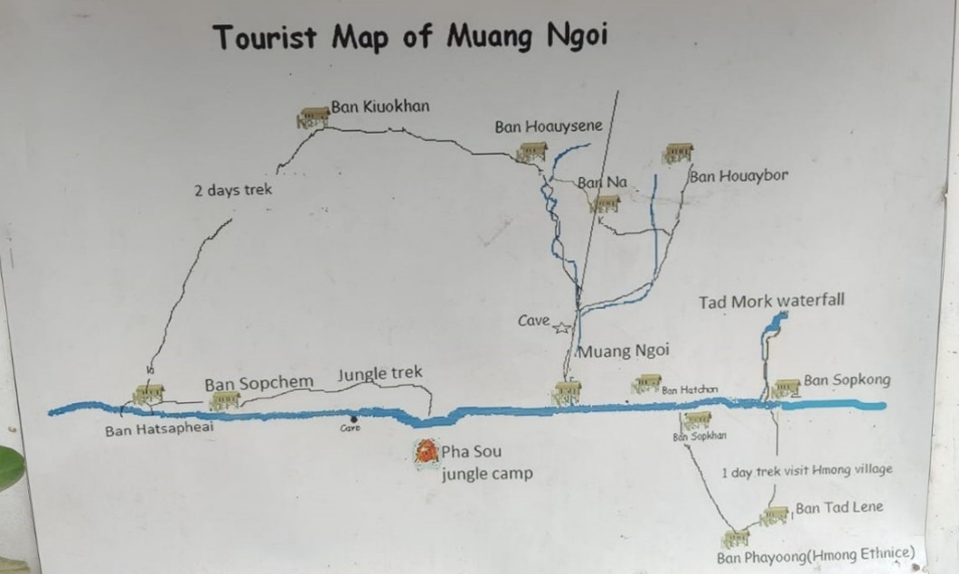 Muang Ngoi area map below from restaurant sign in town