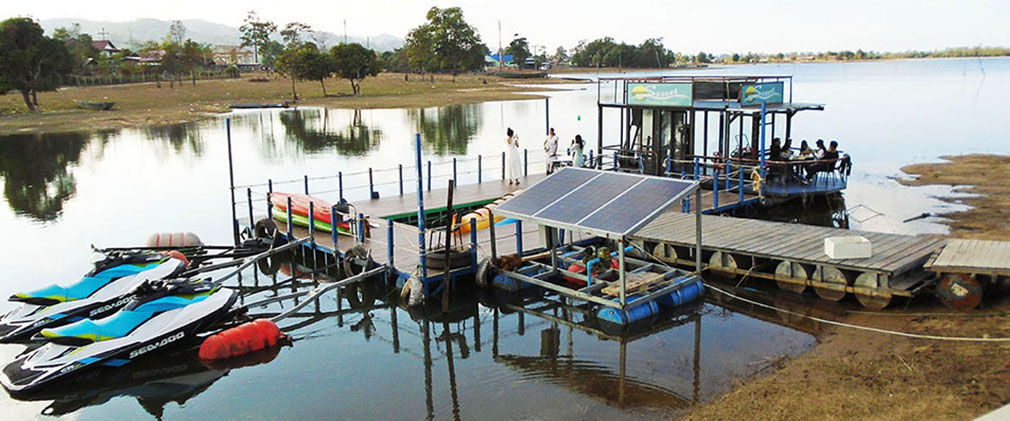 Limited basic Lao dining in town but Sunset Resort a litle out of town has a nice restaurant overlooking the Reservoir.