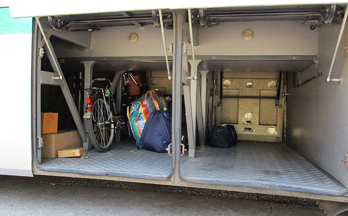 Green Bus has nice big air con buses and passengers can make reservations far in advance - able to carry bicycles in the cargo bay for extra charge. Green Bus to Chiang Mai is 6.5 hour trip with most going a route that stops in Phrae, Lampang & Lamphun but one bus goes via Phayao instead. They also have buses going between Chiang Mai and Thung Chang that stop in Nan on the way. These buses will take passengers bicycles for 50 baht extra as seen in cargo bay picture below.