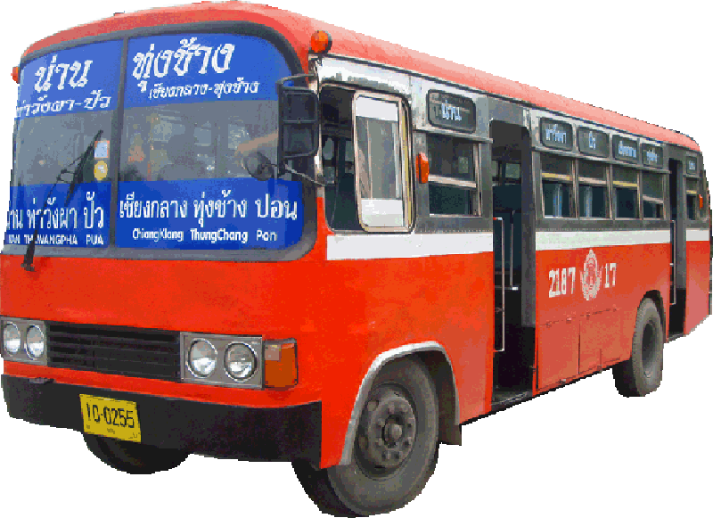 Bicycles on Buses - Minivans to Huay Kon will carry bicycles on top for 100 baht but transport to other places by big old buses or songtaew buses may not be able to take bicycles. Some songtaews don't have racks on top and most big old crawler buses don't have much room for bikes inside and are too tall to take bikes on top.
