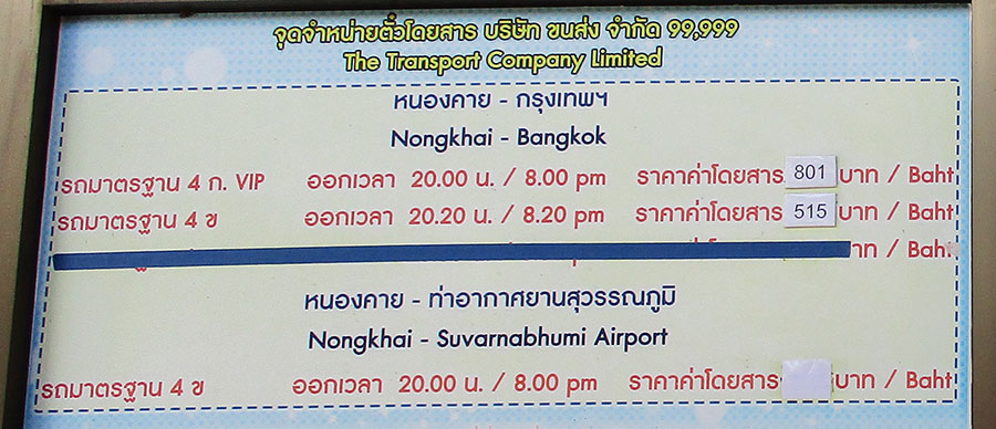 Buses go from Nong Khai to Bangkok & Suvarnabhumi Airport - schedules below at main bus station Nov. 2024