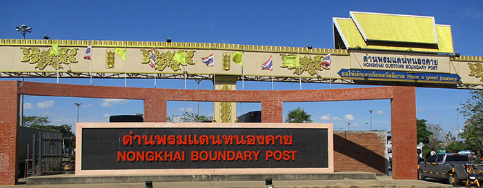 - Most people going to Laos take local transport to the Thai immigration checkpoint and then walk thru immigration carrying their baggage. After clearing customs they take a 5 minute cross-river bus to the Laos immigration checkpoint that departs every few minutes and costs about 40 baht. They then walk thru Laos immigration & customs and have options for the 20 kilometer trip into Vientiane. They can charter a tuk-tuk for about 200 baht that will depart immediately to the destination of their choice or wait for a group to form and pay about 50 baht each for the 30 minute trip to Talat Sao Market station in central Vientiane. Minivans are also available for charter.