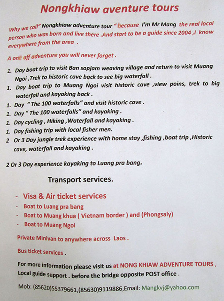 Boat info below from Muang Khua to MuangNgoi & Nong Kiew