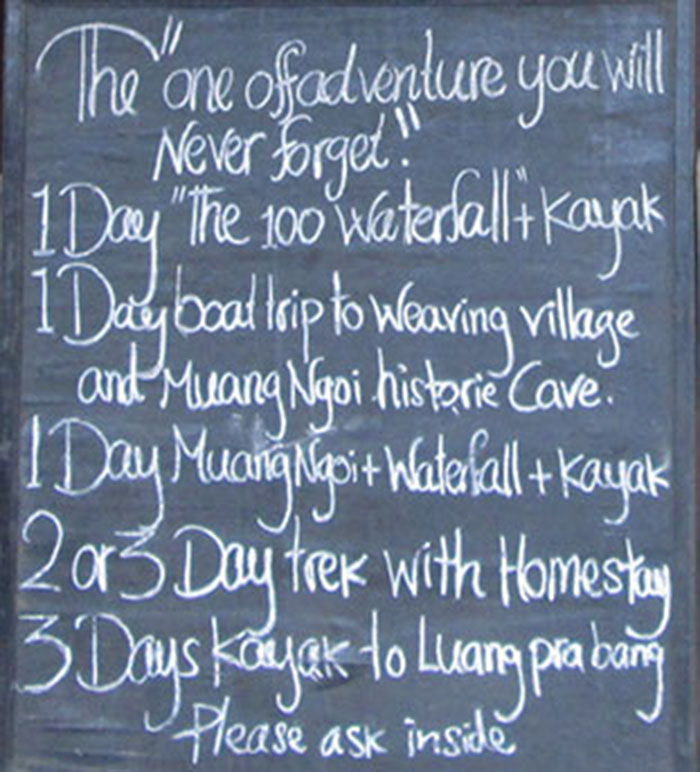 - the town is not large and all places can be reached by walking. Bicycles may be rented at a couple places by the bridge. A cave and waterfall can be explored on the paved highway heading southeast towards Sam Neua.