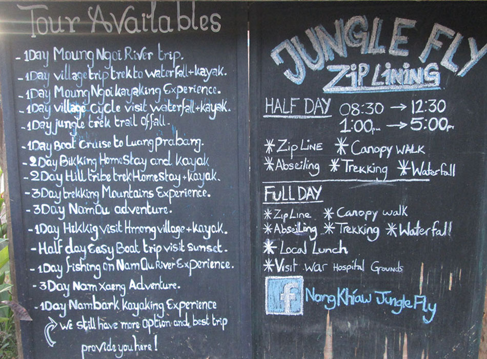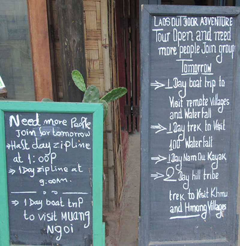 - Boats depart daily for the one hour trip upriver to Muang Ngoi at about 11:00 AM or after as they may wait for minivans to arrive from Luang Prabang (making it possible to travel from L. Prabang to Muang Ngoi the same day). From Muang Ngoi you can go further upriver by boat to Muang Khua which can be arranged after arrival in Muang Ngoi. The Lao government issued a notice in November 2017 that passenger boat service between Muang Khua and Muang Ngoi would no longer be running due to dam construction but we have a report from travelers who took a boat trip from Muang Khua to Muang Ngoi in December 2017. This trip was split into two boat trips with land transport used to get around the dam. Not sure how often this split trip will be running but we hope it is permanent and will go according to schedule.