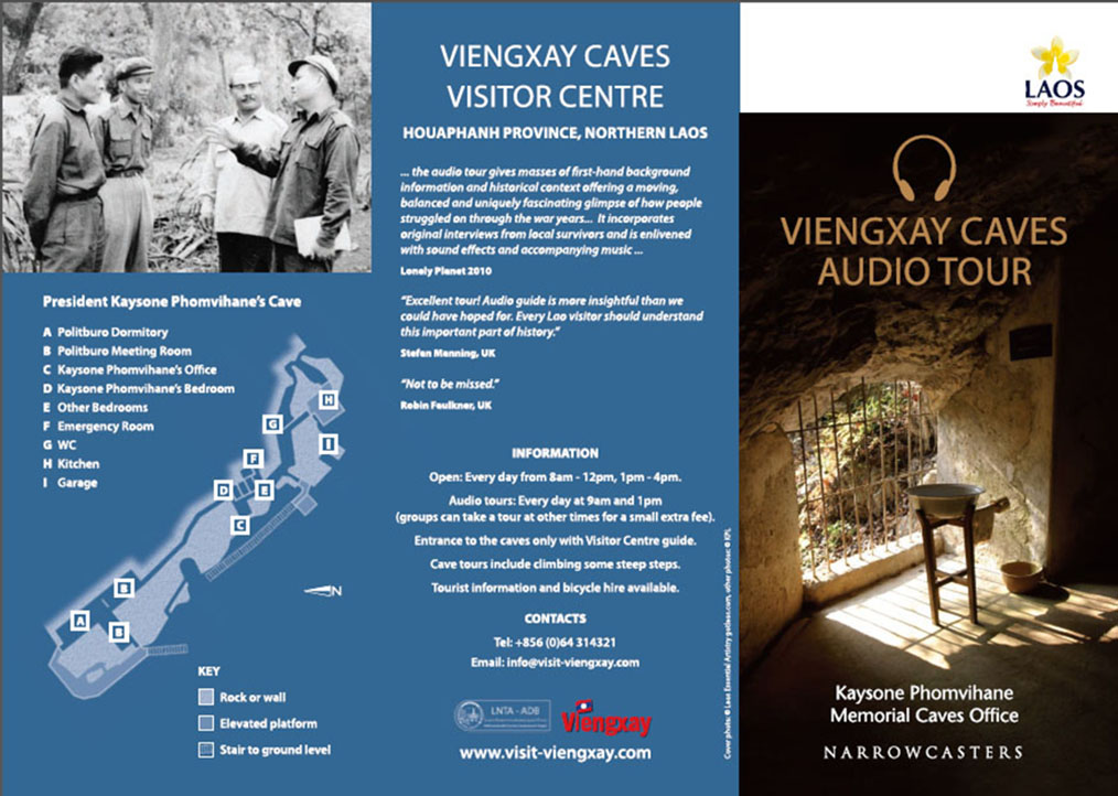 - The Viengxay Caves Visitor Centre is open daily from 08.00-12.00 and 13.30-16.30. A one-day trek including caves, culture and nature is available. They also offer a guided Audio Tour of the caves (in Lao & English) and bicycle rentals. It's not possible to see the caves without a government guide. Tours can be arranged on arrival, but they will only depart between 09:00 and 11:00 and after lunch at 13:00 until 16:00. These tours are either walking or bicycling tours. Each tour group must be all walkers or all cyclers and not a mixture.