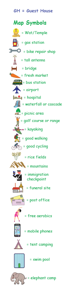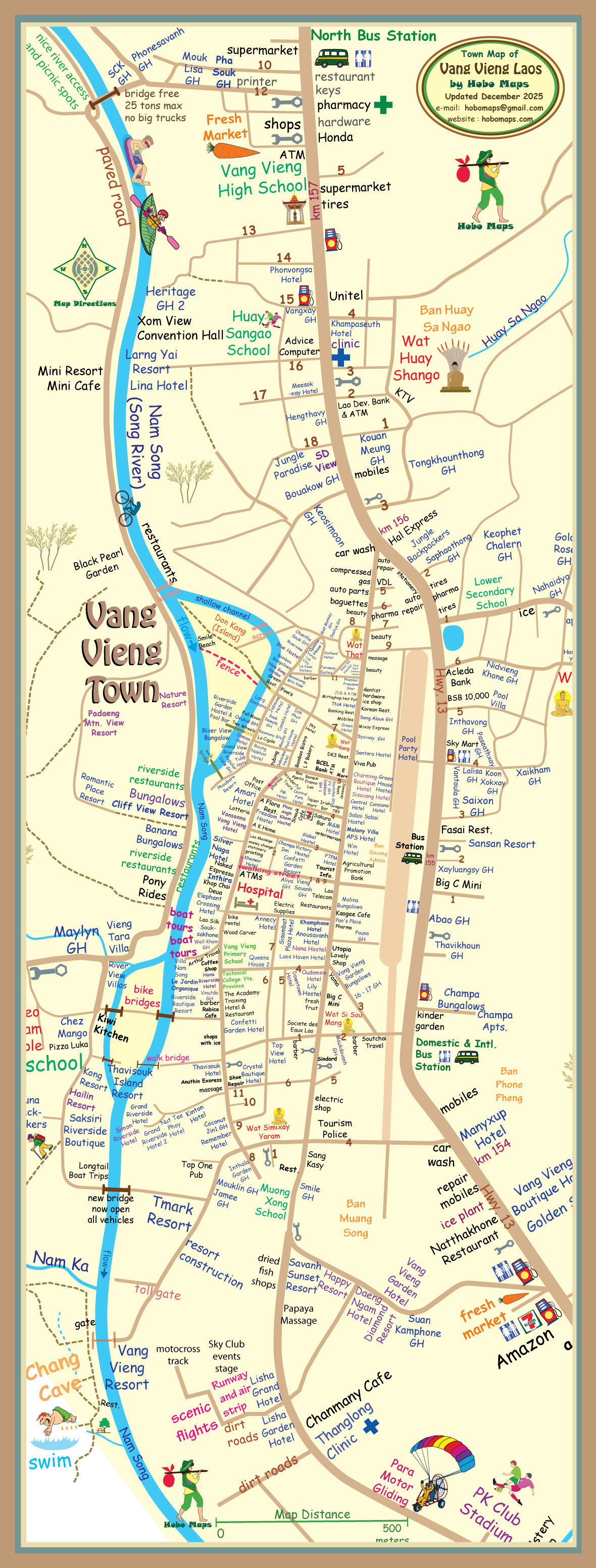 The Vang Vieng Town map above is also available in PDF format for off-line viewing on computers, tablets & mobiles - $1.00 each - click HERE for info