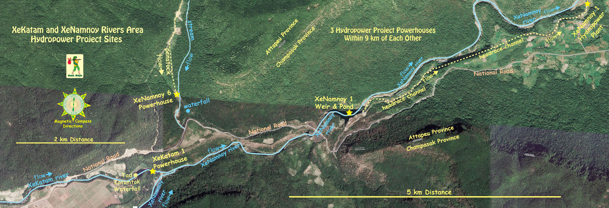 XeKatam and XeNamnoy Rivers Area Map by Hobo Maps - Go to Hydropower Projects Page - - - Home