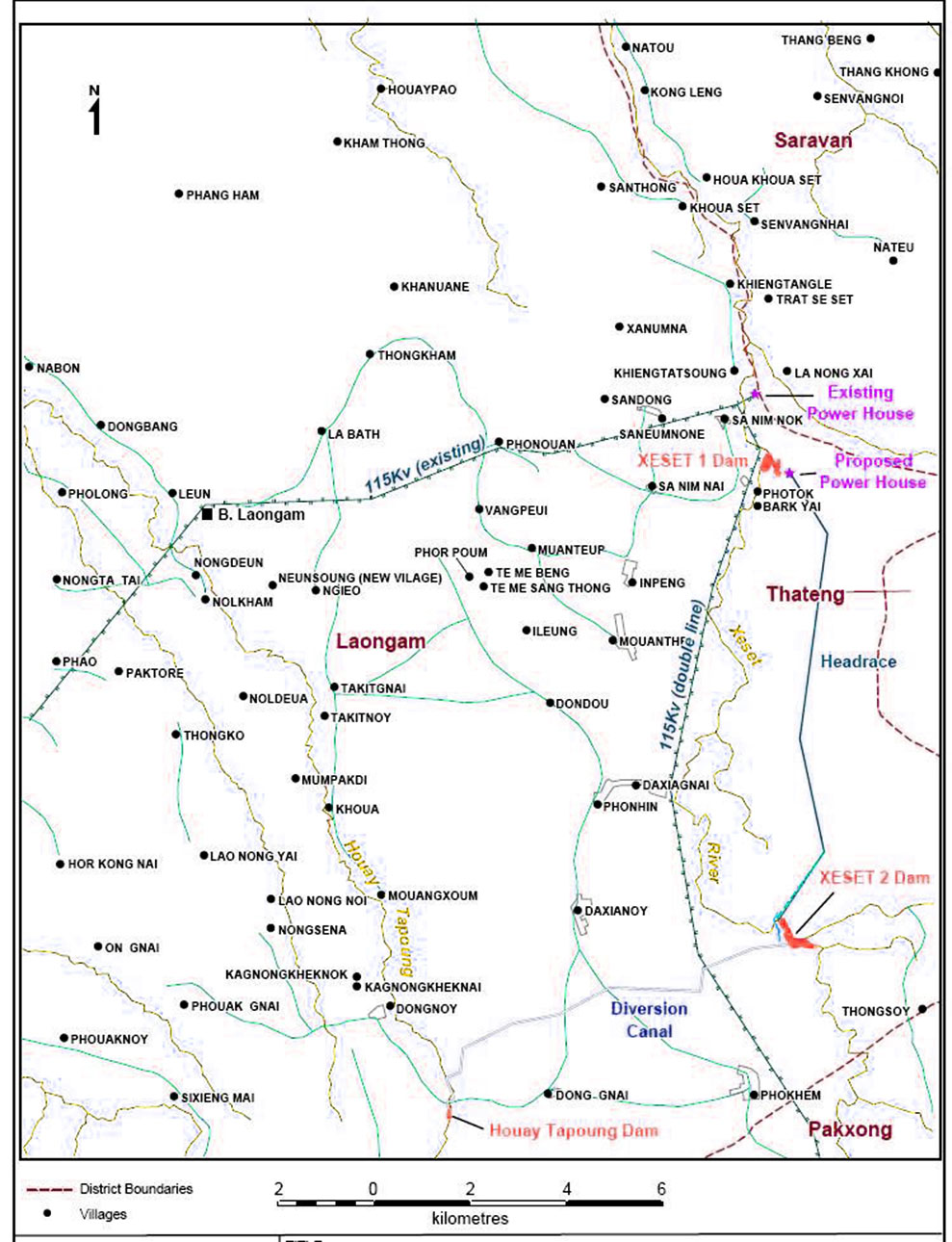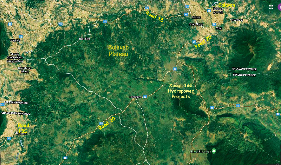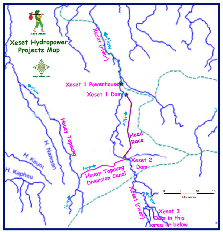 Xeset 1 & 2 Hydropower dam locations shown below along with Houay Tapoung and Dam (at the bottom):