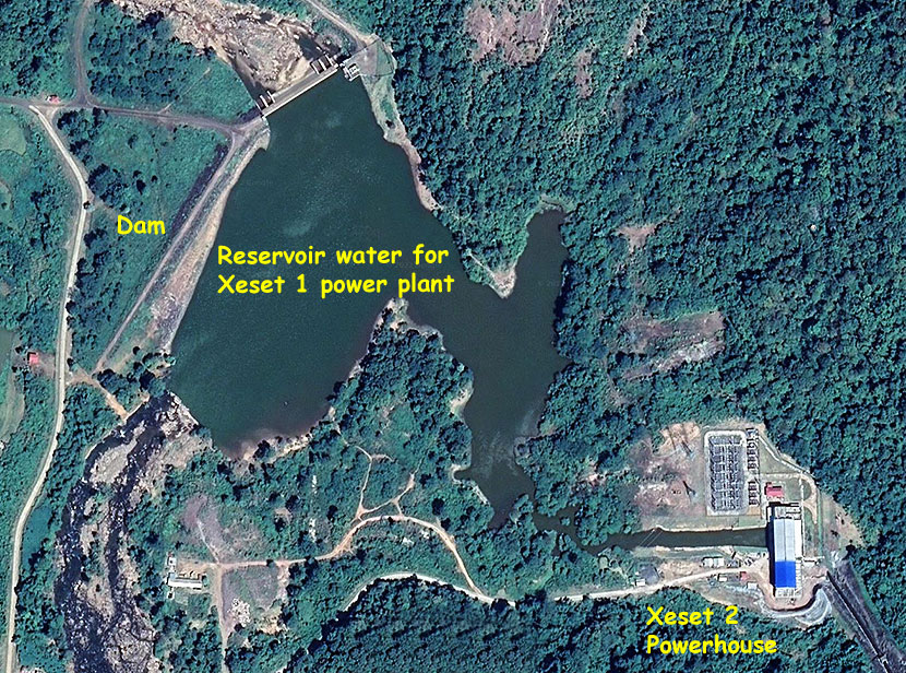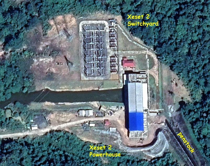 Satellite image view of Xeset 1 & 2 hydro projects layout below:
