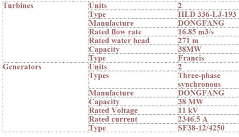 The original Xeset 2 Project has two vertical Francis turbines with total installed capacity of 76 MW as seen in the chart below.