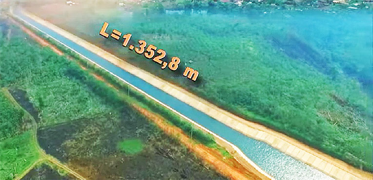 The project has a 14 meter-high and 238 meter-long rockfill dam structure with reinforced concrete facing.