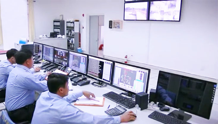 There is a 29.6 meter-high surge tank with a 9 meter diameter.